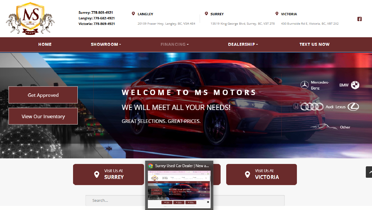 Welcome to MS Motors, we are Surrey’s premier used car dealership. We provide an excellent selection of used cars at great prices…